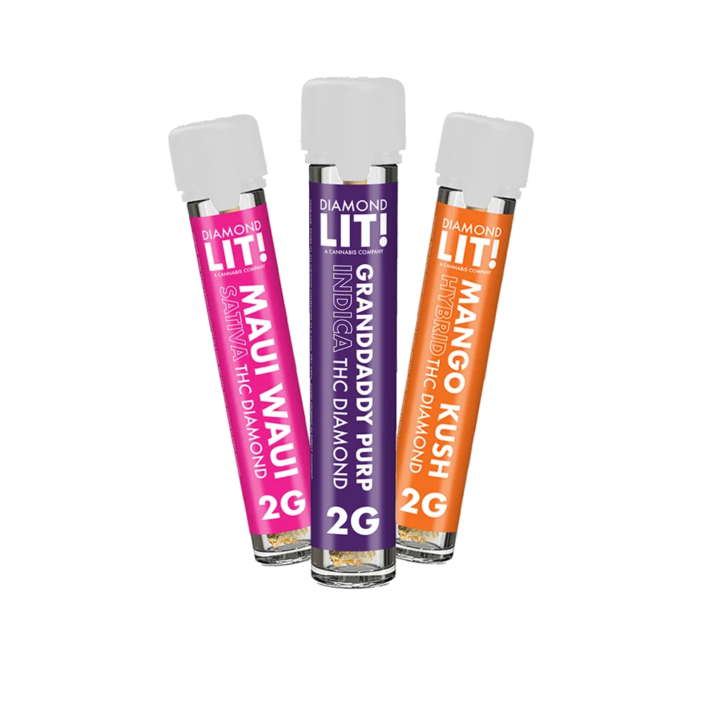 Diamond LIT THC With Diamonds Pre Roll 2G delivers bold, premium quality for every session. Enjoy the convenience and power of THC Pre Rolls, crafted by Diamond LIT for those who demand more from their experience.